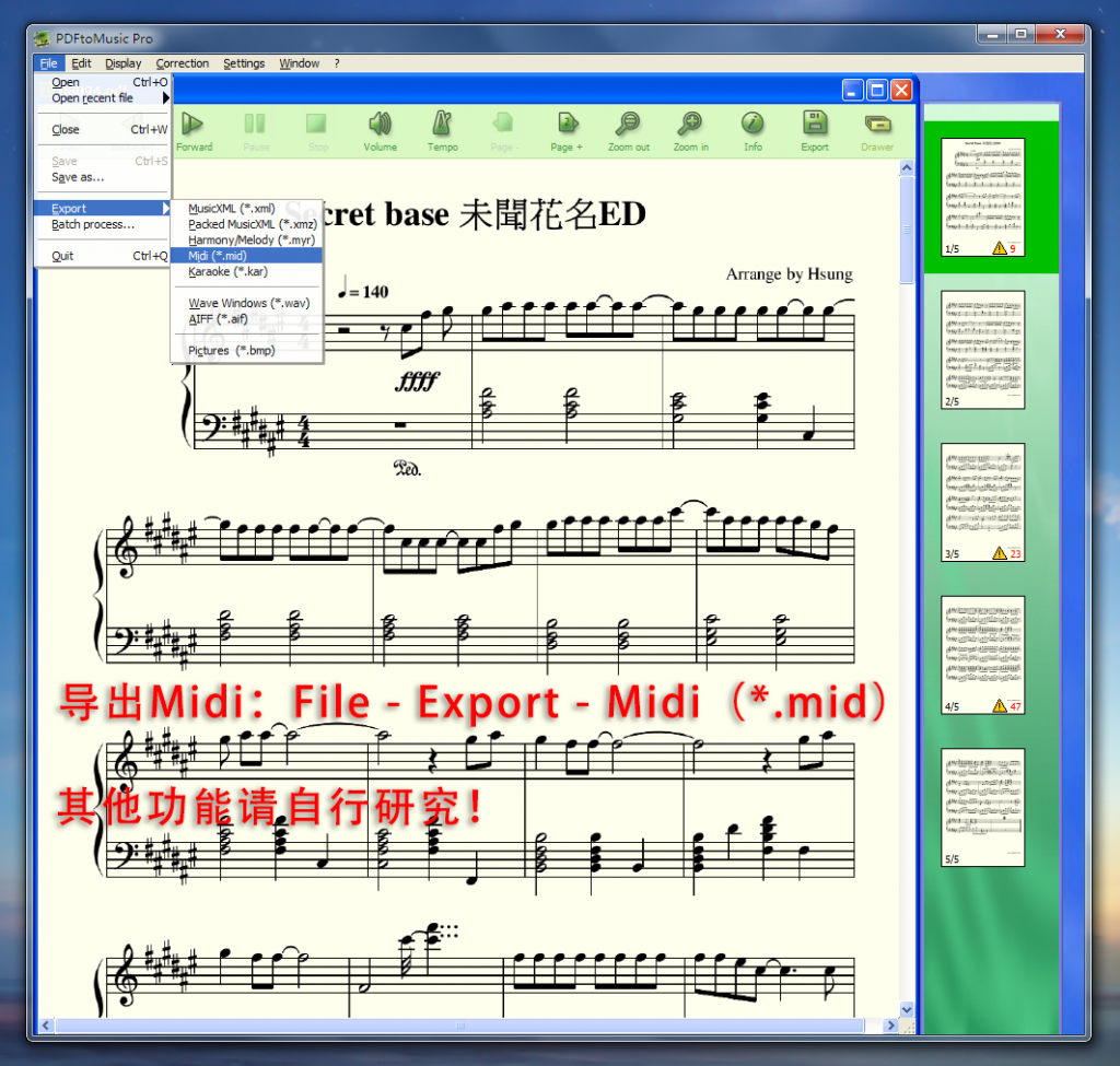 通过 MusicXML、MIDI 等格式与其它程序交换